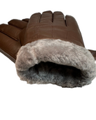 Lammeskinnshansker med grå lammepels herre - Brun