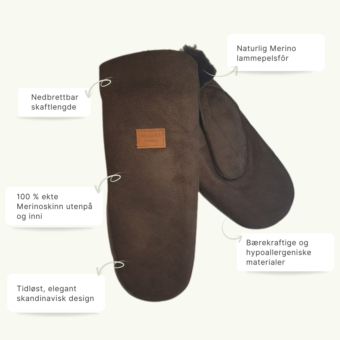Lammeskinnsvotter med Merino lammepels dame - Brun